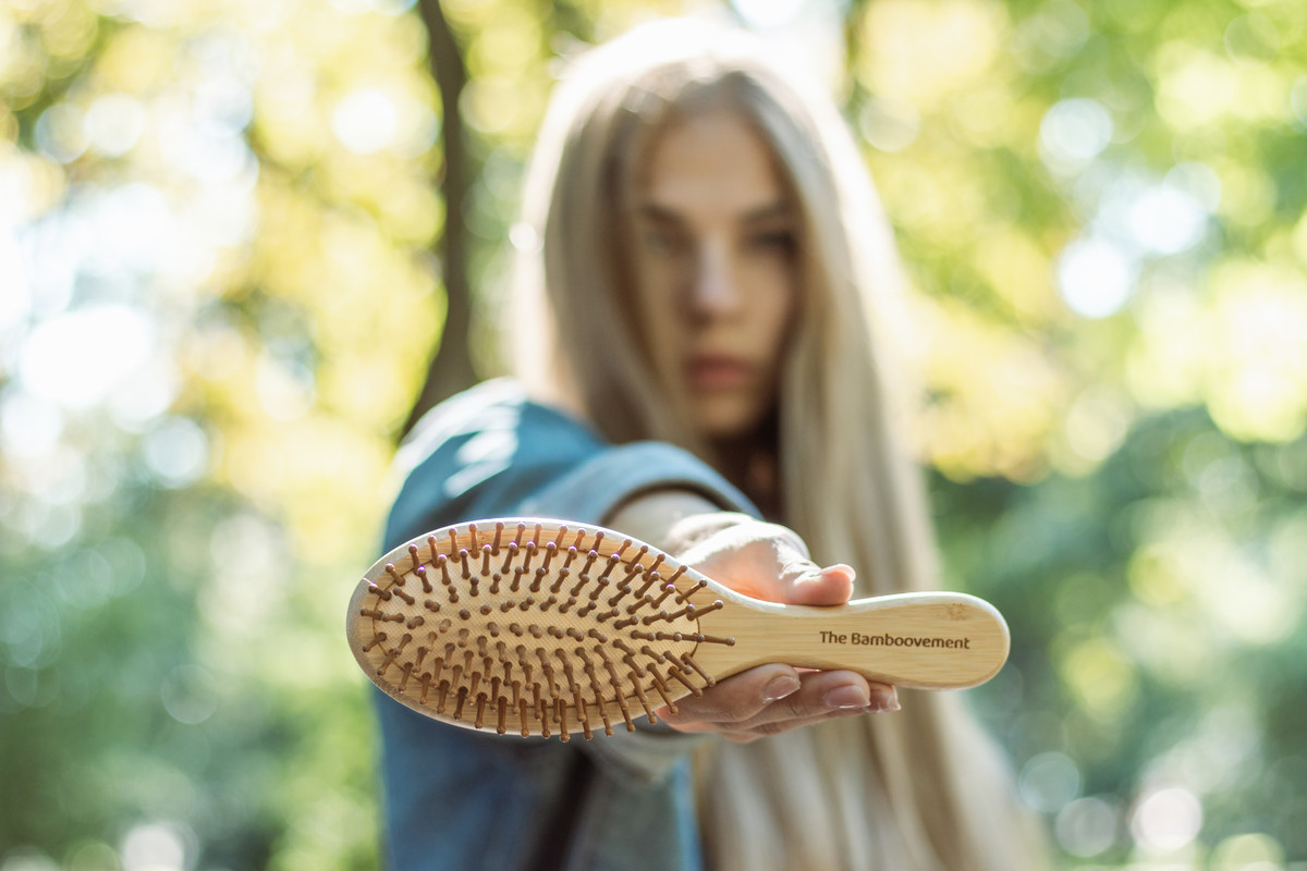 This beautiful bamboo hairbrush solves both problems at once. A hairbrush that helps keep hair healthy and shiny. It is completely plastic-free and has bamboo bristles instead of animal hair.
