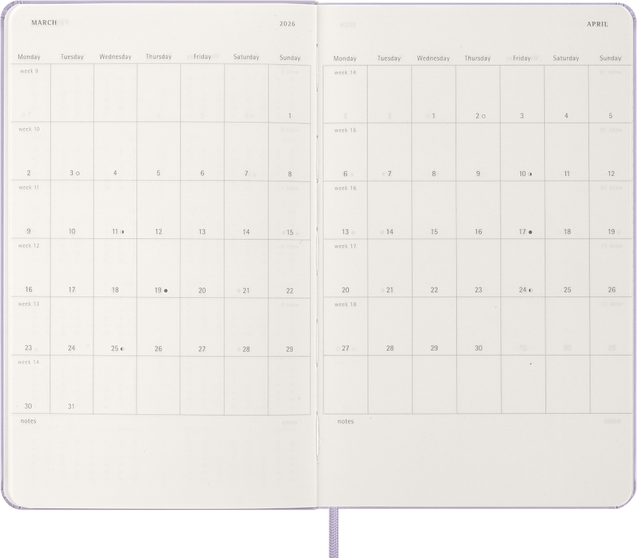 Keep an eye on your schedule everywhere you go with the internationally beloved 2026 Daily Diary from Moleskine. The A5 12 month diary is a convenient, bag-friendly size, but massive on the inside, with plenty of room to organise your schedule down to the last detail. With a fresh page for each day, you can avoid clashing appointments and make sure you’re where you need to be. The large size means you can keep track of every last detail, using the monthly calendar-style view to help you see what’s coming up. Plus, the diary’s hard cover makes it easy to add a last-minute meeting on the move. With an elastic closure, ribbon bookmark and 3 sheets of stickers to help you customise your days, you can keep your whole life organised in one handy place with Moleskine’s simple, classic diary.