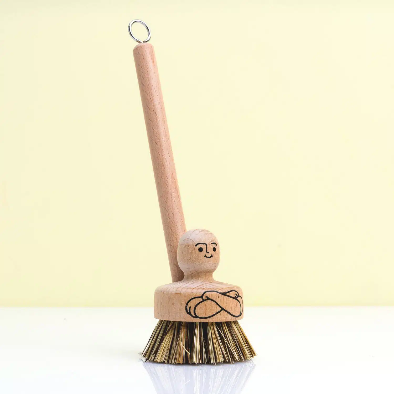 The design is shaped like a man doing the dishes. This handy kitchen helper never complains and is happy to help you with your dirty dishes. The dishwashing brush is made from 100% natural materials, making it an eco-friendly addition to your kitchen.