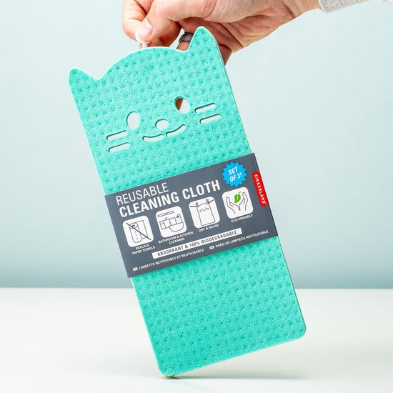 Aaibare schoonmaakdoekjes van Kikkerland in de vorm van een kat om de afwas te doen of het aanrecht schoon te maken.