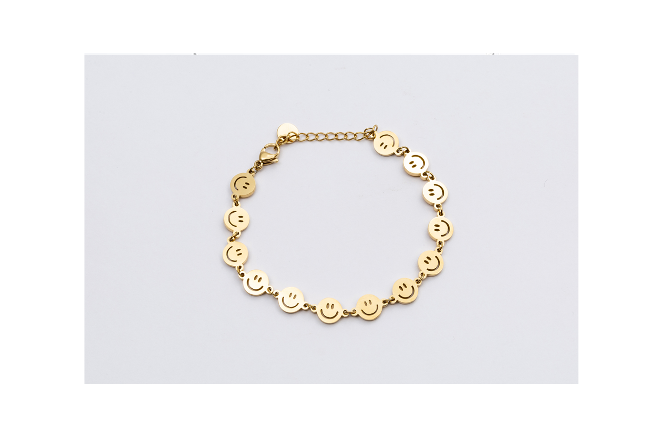 Leuke goudkleurige armband met smileys.