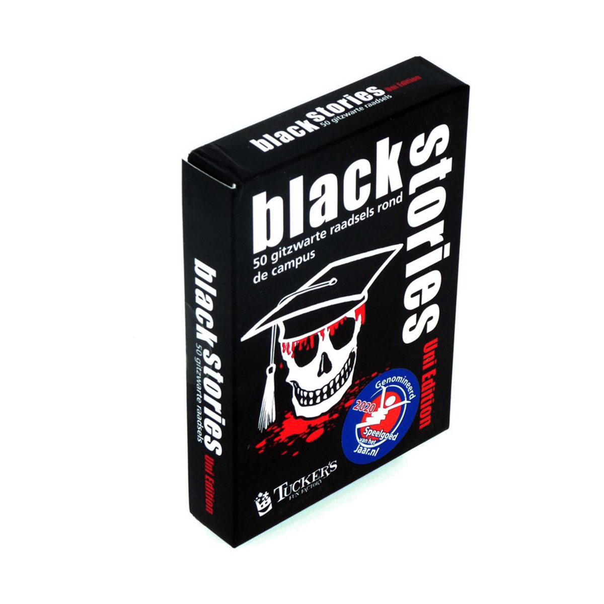 Professoren verdwijnen op mysterieuze wijze en medestudenten komen onder lugubere omstandigheden om het leven. Als de tentamenstress je gek maakt, laat dan liever je nekharen overeind zetten en los de gitzwarte raadsels van de black stories Uni Edition op!
